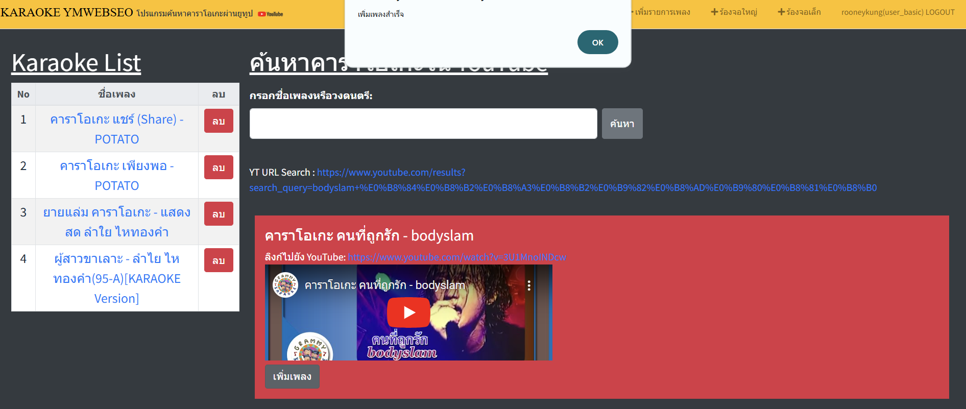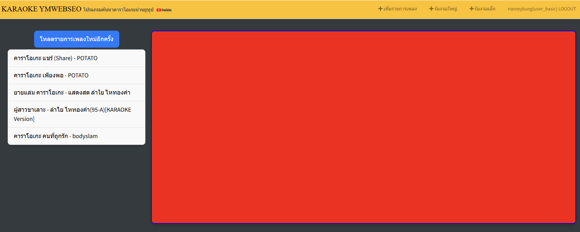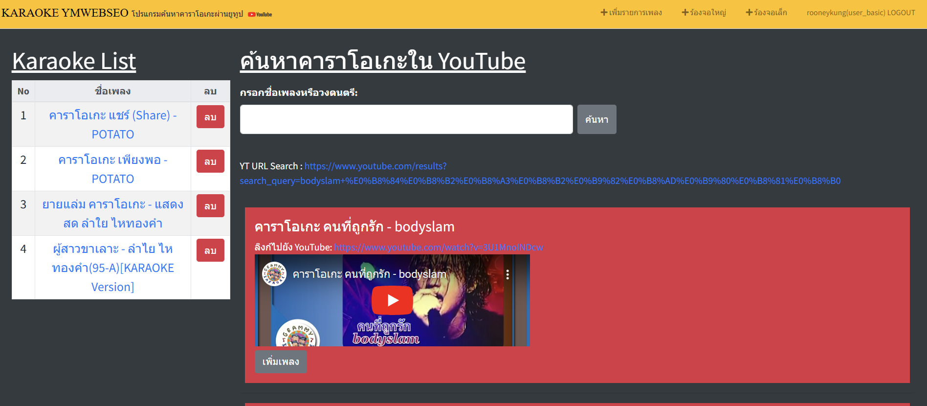 - ค้นหาเพลง: พิมพ์ชื่อเพลงหรือศิลปินในช่องค้นหา