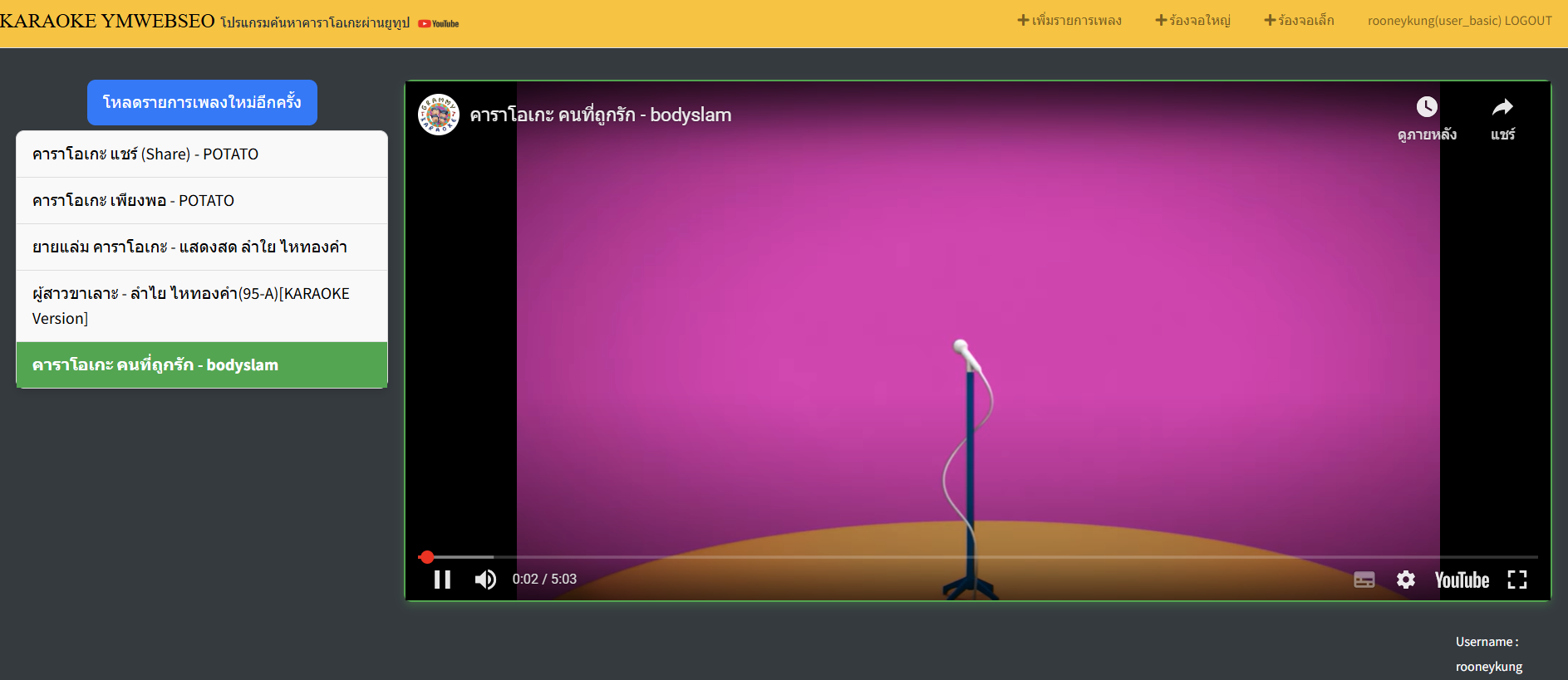 - เล่นเพลง: เปิดวิดีโอจาก YouTube ในโหมดคาราโอเกะ
